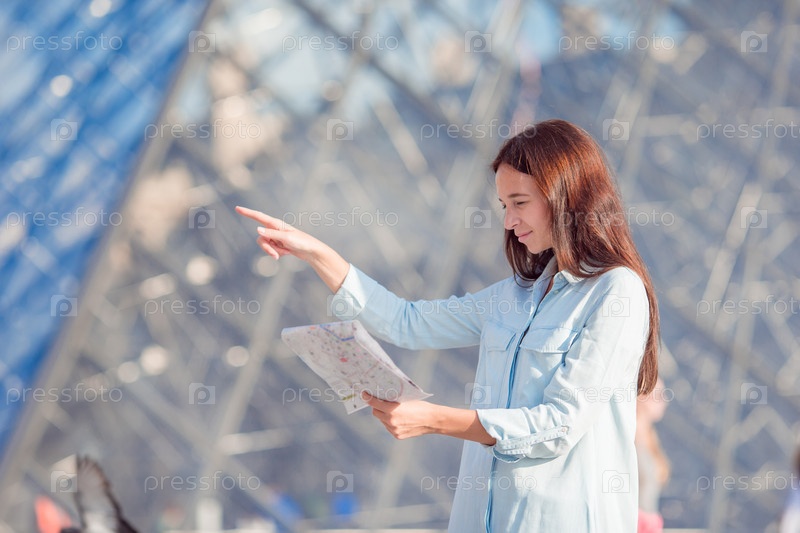Молодая женщина с картой города