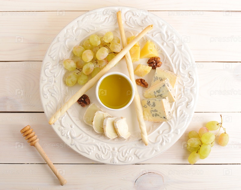 Сырное ассорти с виноградом, медом и грецкими орехами