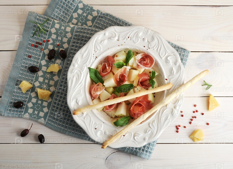 Ветчина с дыней и хлебные палочки