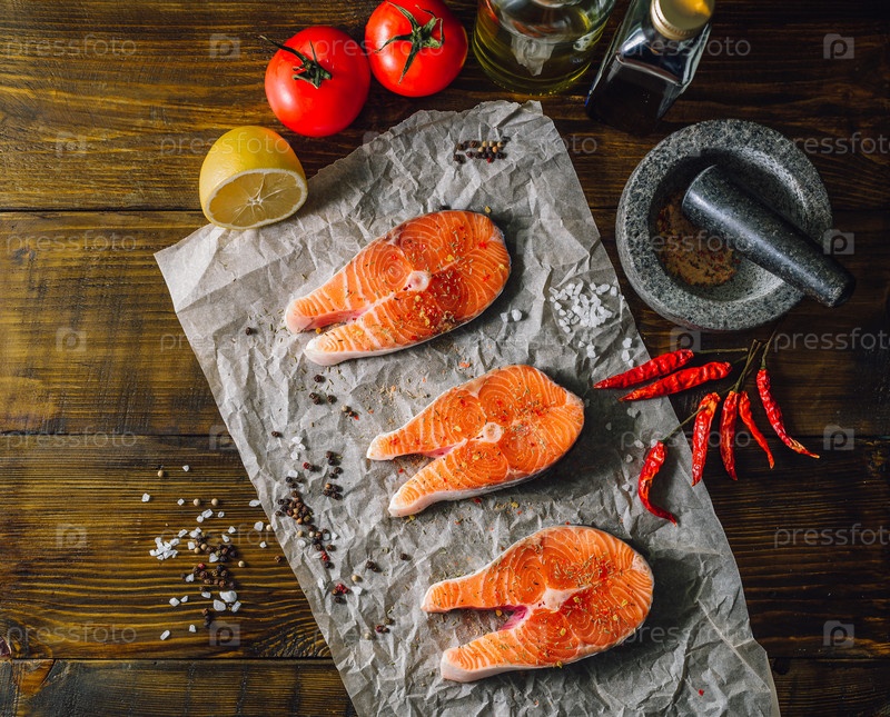 Стейки лосося с овощами и специями