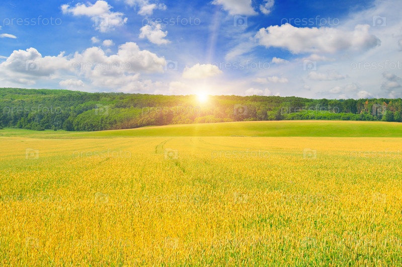 Пшеничное поле и восход солнца