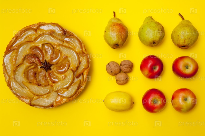 Грушевый пирог и фрукты