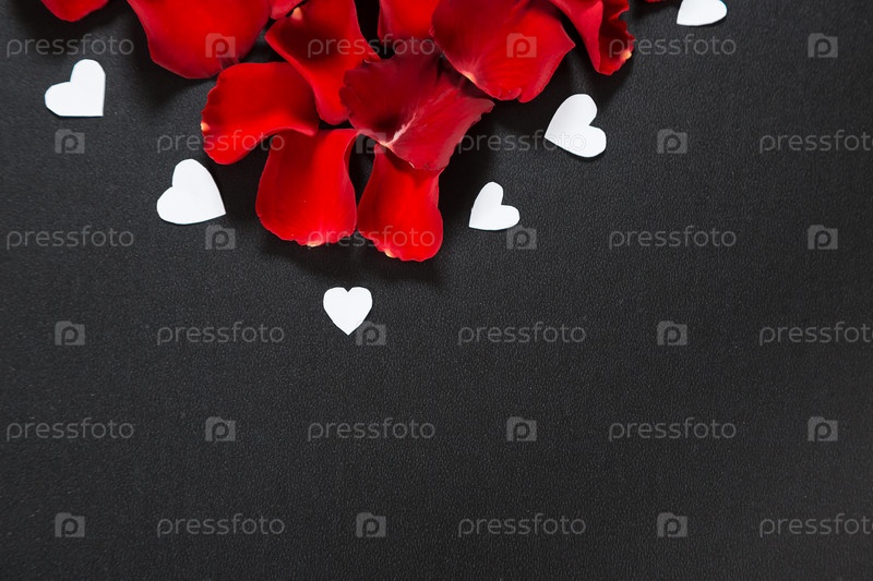 Красивые красные лепестки роз в форме сердца