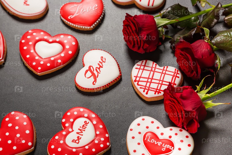 Пряники-сердца и красные розы