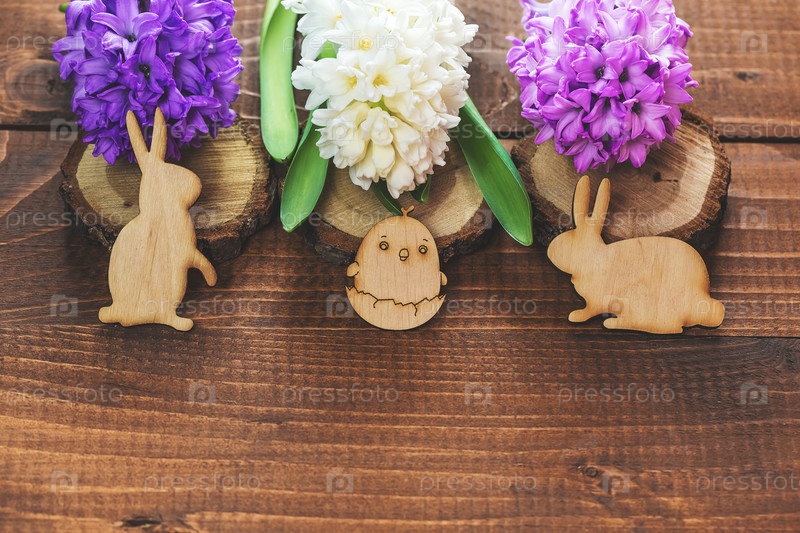 Свежие гиацинты с пасхальными украшениями
