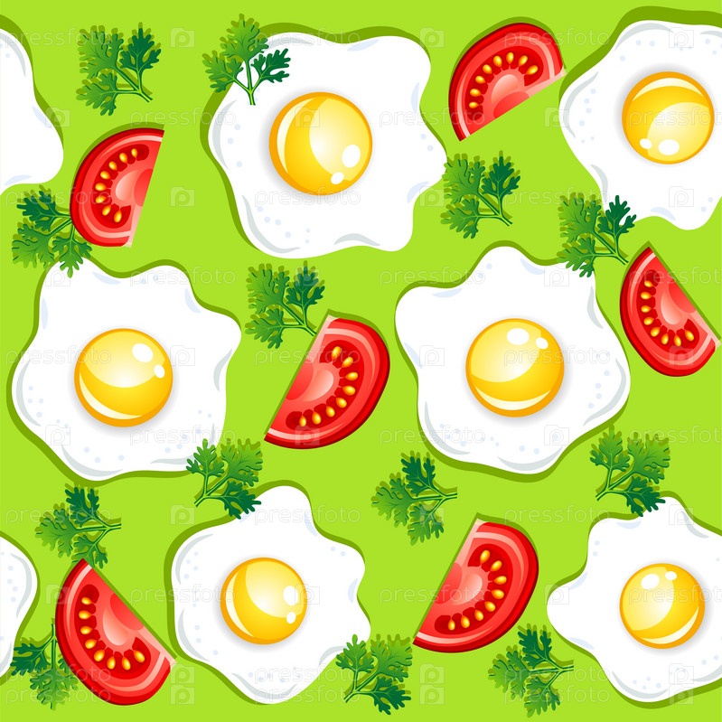 Бесшовный шаблон с яичницей и помидорами