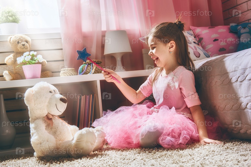 Девочка играет с волшебной палочкой