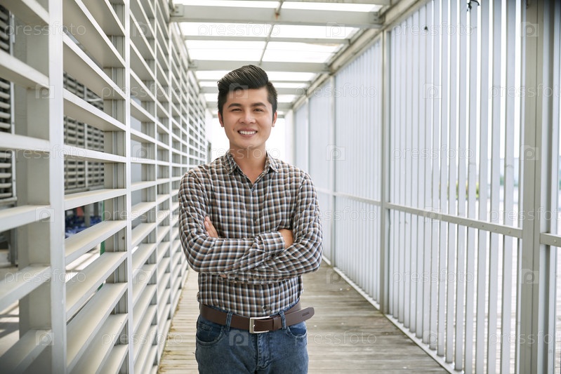 Молодой азиатский бизнесмен со скрещенными руками