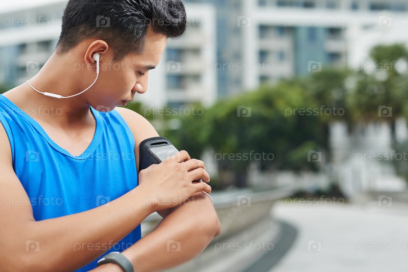 Азиатский бегун с нарукавной повязкой
