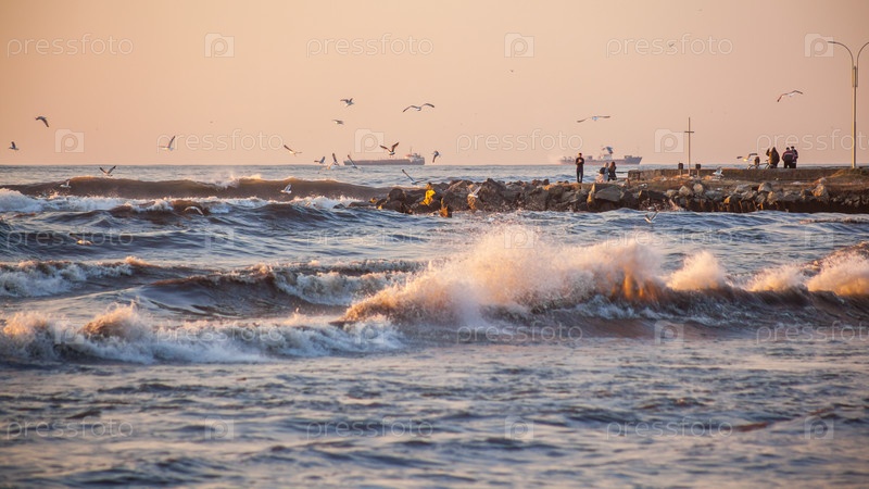 Буря на побережье Черного моря, Поти, Грузия