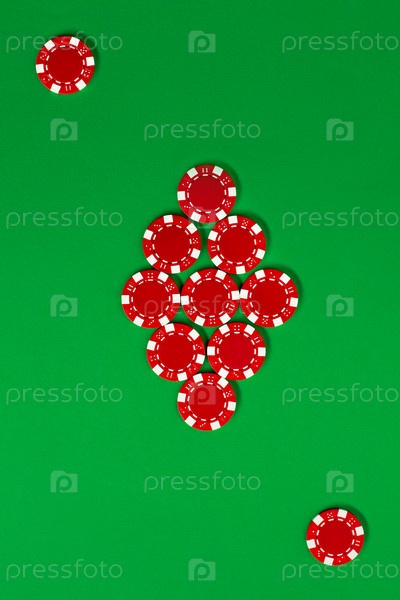 Покерные фишки на зеленом фоне