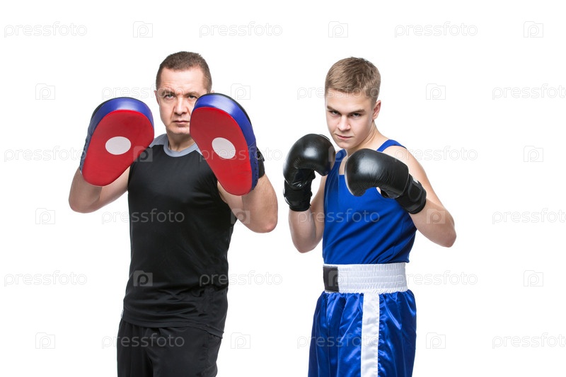 Молодой боксер с тренером
