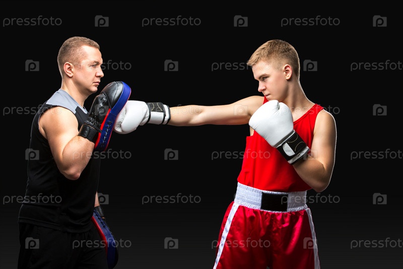 Молодой боксер с тренером