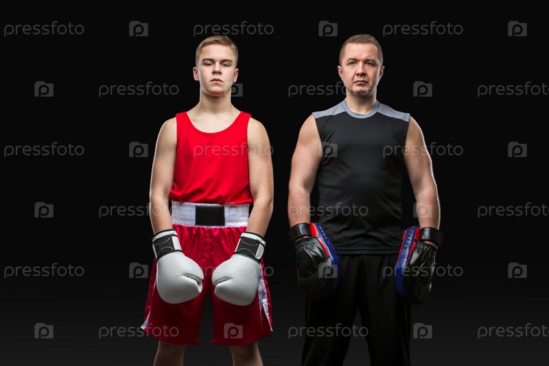 Молодой боксер с тренером