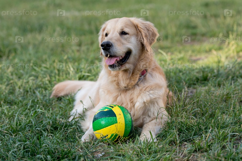 Золотой ретривер с мячом