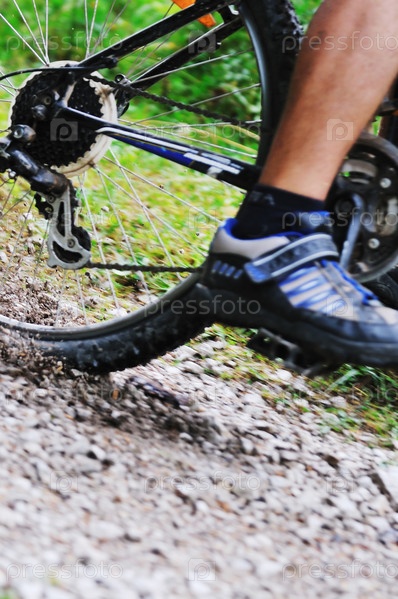 Велосипедист на горном велосипеде. Концепция фитнеса и здорового образа жизни
