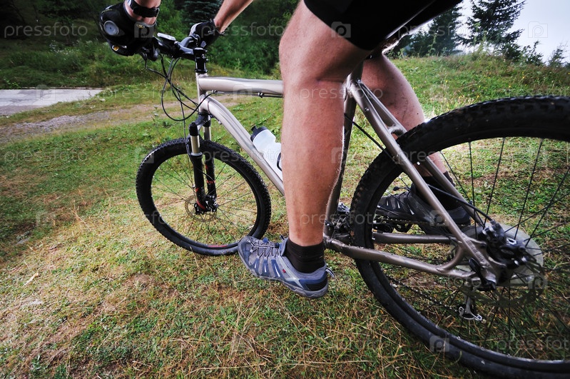 Велосипедист на горном велосипеде. Концепция фитнеса и здорового образа жизни