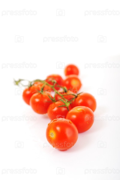 Красные влажные помидоры на белом фоне