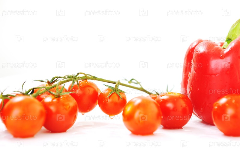 Красные помидоры и перец на белом фоне