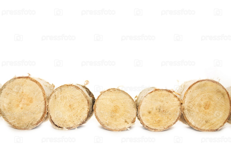 Березовые бревна крупным планом. Изоляция на белом фоне