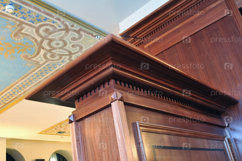 Интерьер кофейни с роскошной деревянной мебелью