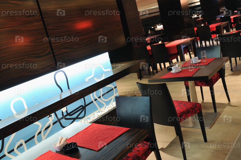 Интерьер кофейни с роскошной деревянной мебелью