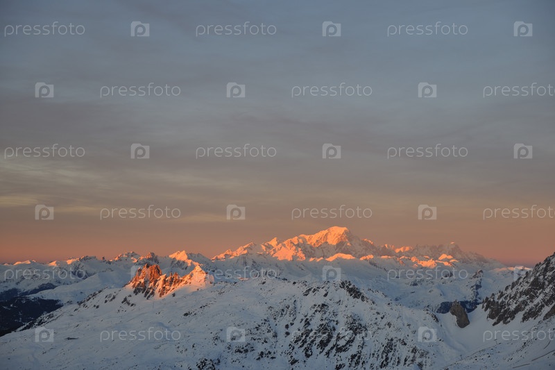 Закат в заснеженных горах французского горнолыжного курорта Валь Торанс