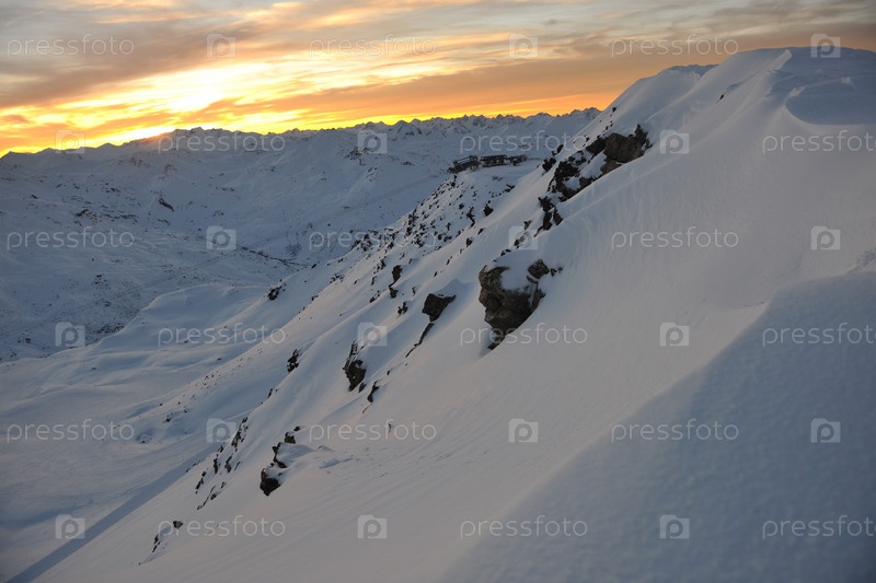 Закат в заснеженных горах французского горнолыжного курорта Валь Торанс