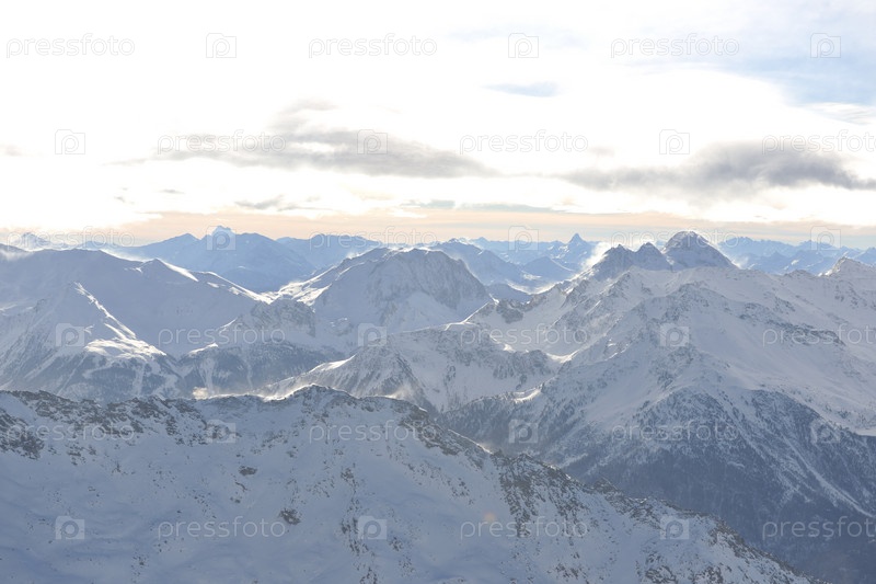 Закат в заснеженных горах французского горнолыжного курорта Валь Торанс