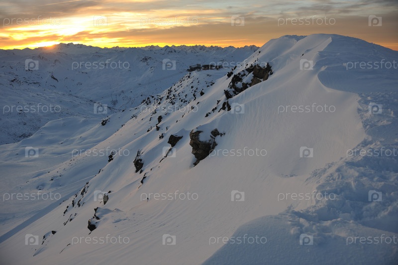 Закат в заснеженных горах французского горнолыжного курорта Валь Торанс