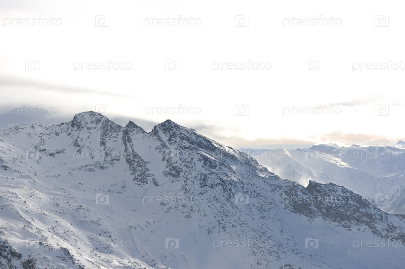 Закат в заснеженных горах французского горнолыжного курорта Валь Торанс