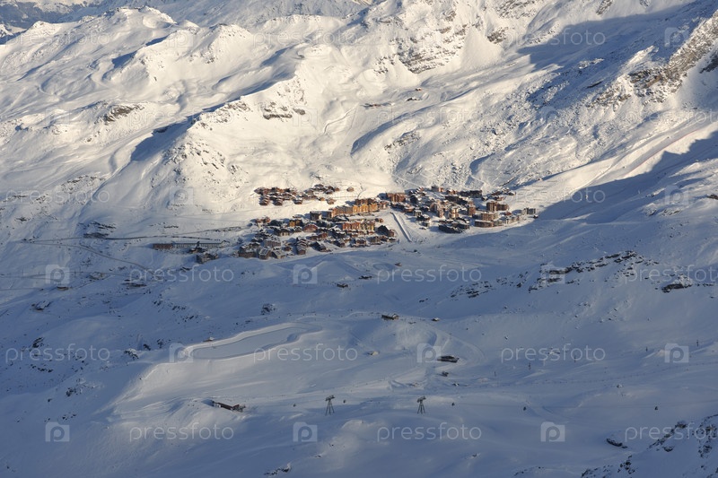Закат в заснеженных горах французского горнолыжного курорта Валь Торанс