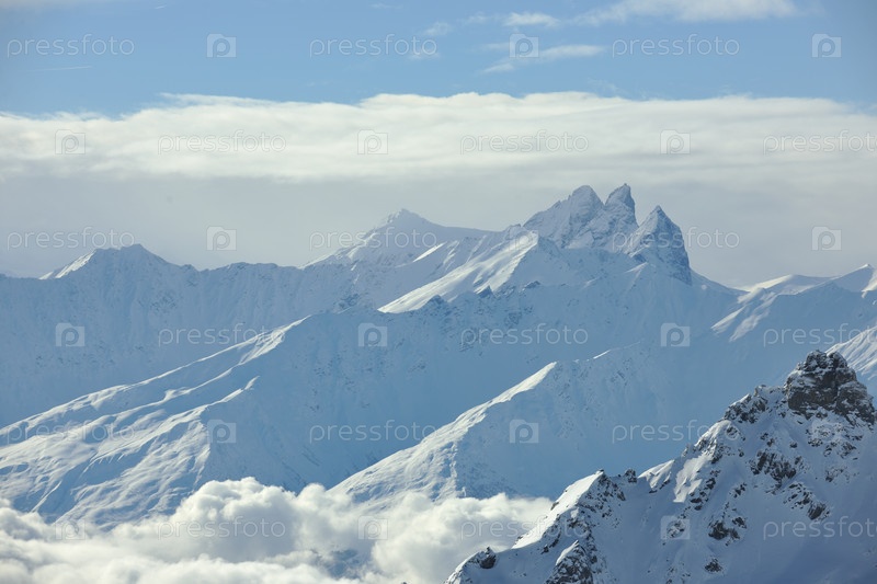 Закат в заснеженных горах французского горнолыжного курорта Валь Торанс