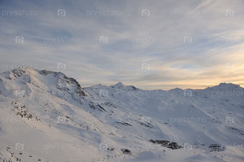 Закат в заснеженных горах французского горнолыжного курорта Валь Торанс