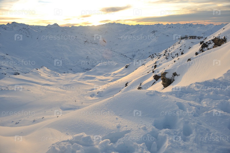 Закат в заснеженных горах французского горнолыжного курорта Валь Торанс
