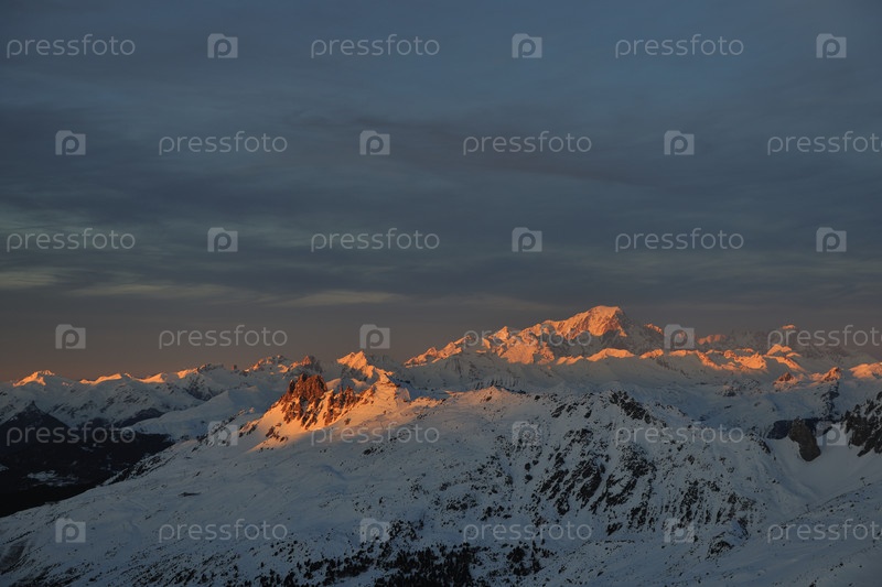 Закат в заснеженных горах французского горнолыжного курорта Валь Торанс