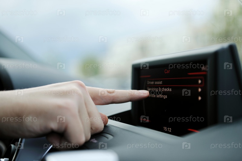 Водитель использует новейшую бортовую систему и автомобильную навигацию