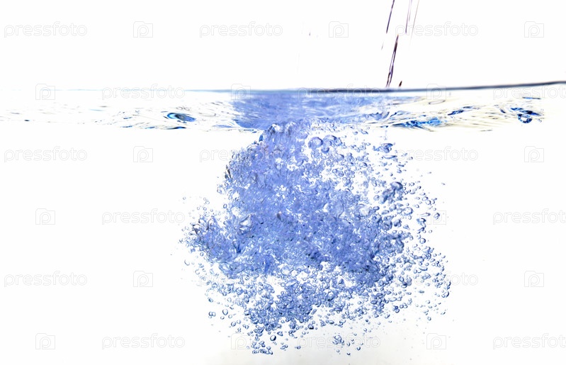 Пузырьки в голубой воде на белом фоне