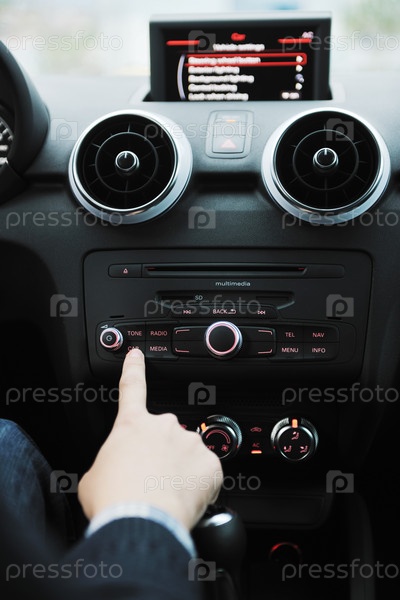 Водитель использует новейшую бортовую систему и автомобильную навигацию