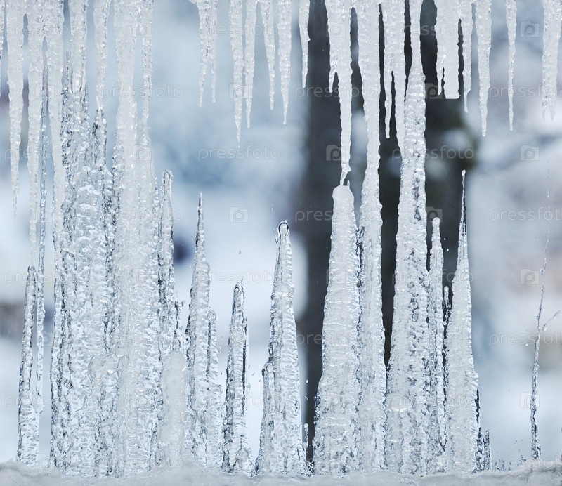 Замерзшее окно с сосульками