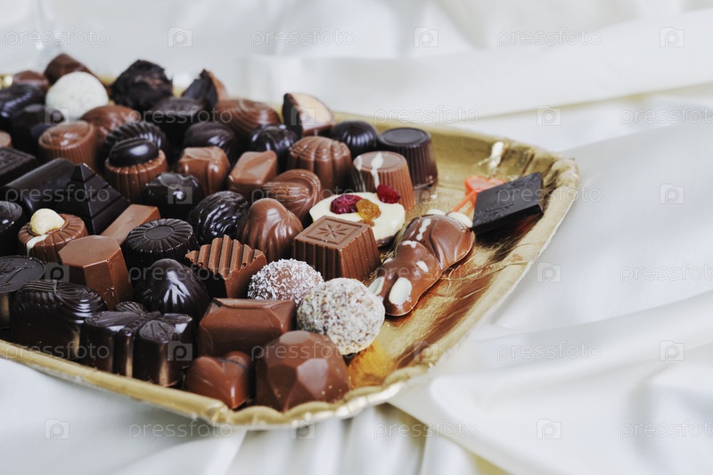 Роскошные сладкие пралине и шоколадные конфеты крупным планом