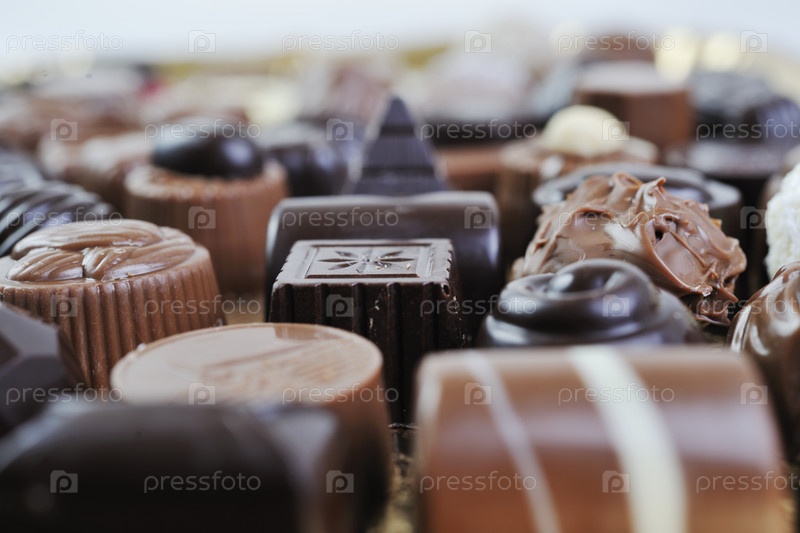Роскошные сладкие пралине и шоколадные конфеты крупным планом