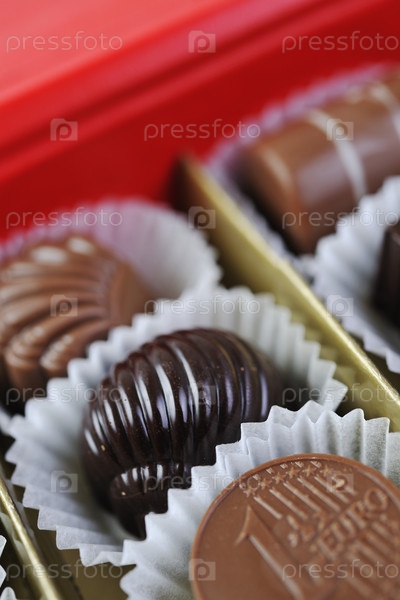 Роскошные сладкие пралине и шоколадные конфеты крупным планом