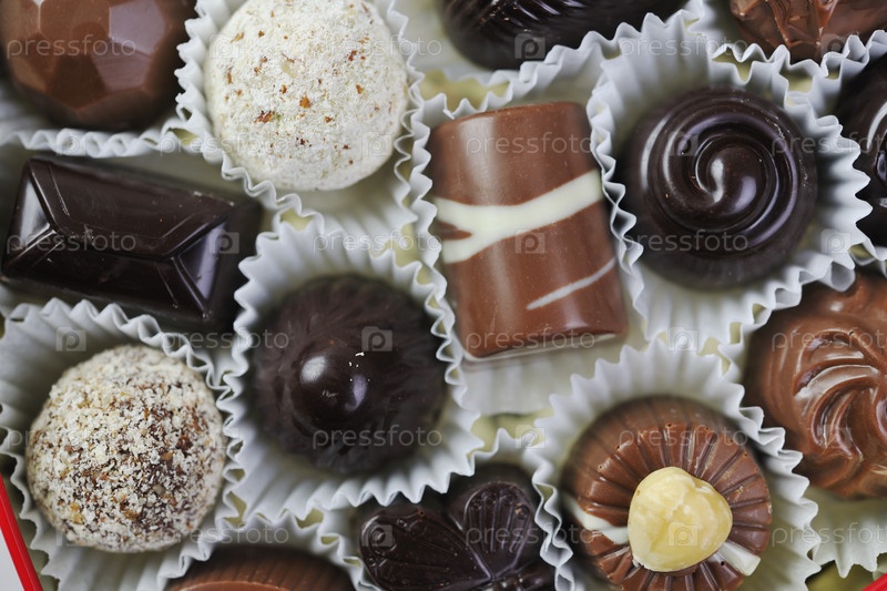 Роскошные сладкие пралине и шоколадные конфеты крупным планом