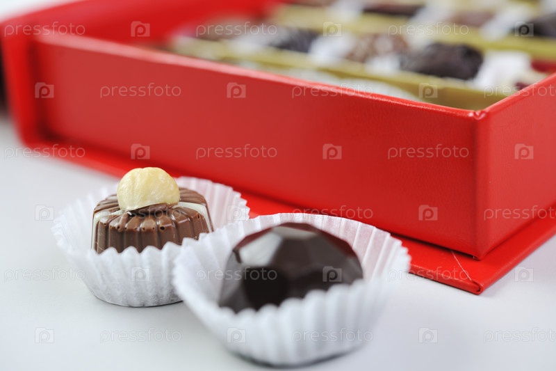 Роскошная коробка с пралине и шоколадными конфетами