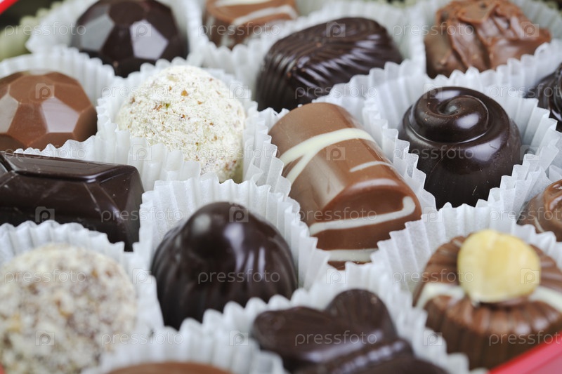 Роскошные сладкие пралине и шоколадные конфеты крупным планом