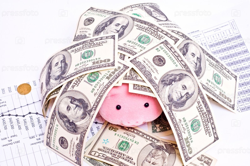 Деньги, копилка, график на белом фоне