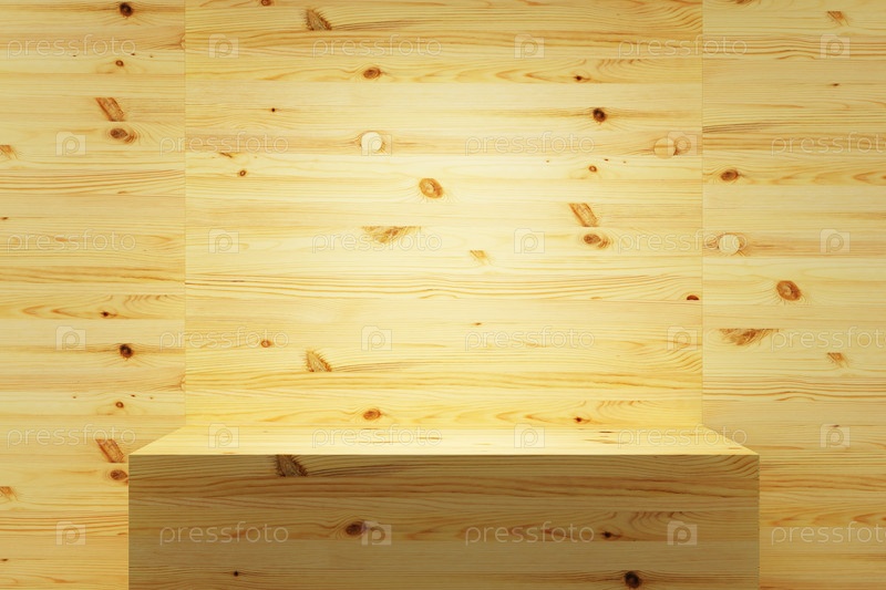 Пустая деревянная полка на стене, 3d