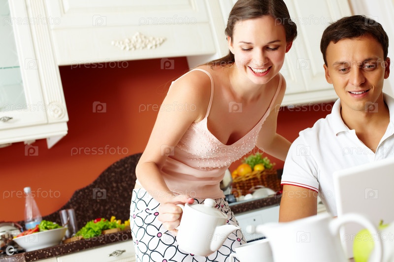 Молодая семья во время завтрака