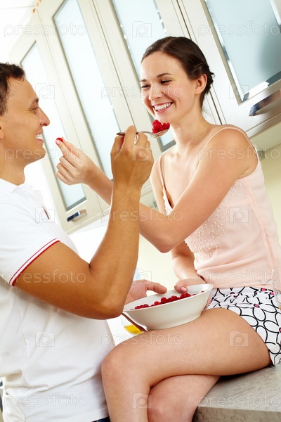 Молодая семья во время завтрака